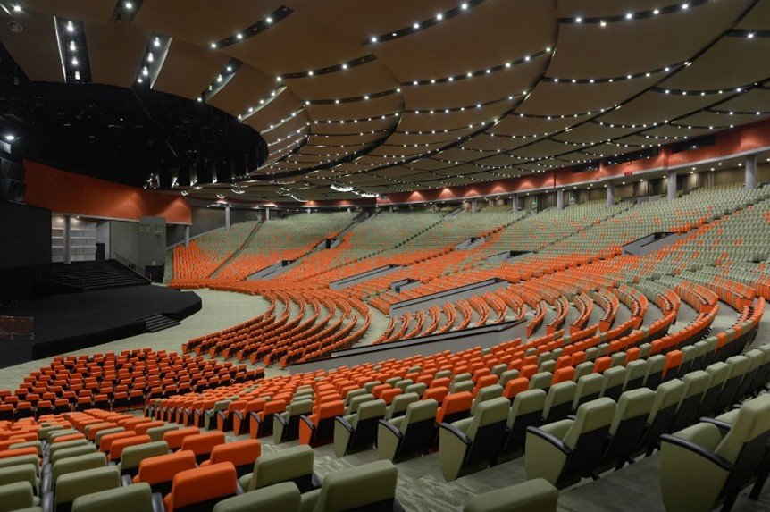 The Ciputra Artpreneur Theater offers a-1,157 seat capacity of international theater standard, suitable for hosting conferences, product launches, concerts, awarding nights, fashion shows, theatrical performances and dance performances. It is a sophisticated venue, set with high international standards in all of its aspects, including a modular stage, an orchestra pit and a fly tower. The oval shape site delivers perfect viewing angle and gives the best visual treatment for all audience. Together with a highly calculated acoustic design, the theater offers a thorough bliss of visual and audio experience and designed to deliver the best experience for the audience.
